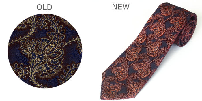 100年以上もの前の生地を忠実に再現したネクタイや、その生地がさらにどう現代版ネクタイへと復刻したのか。ぜひ、楽しんでご覧くださいませ。